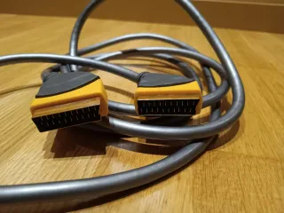 Cable de conexión Euroconector con una longitud de 2.5 metros (blindado). - Conectores dorados. - Cable de color gris oscuro.
