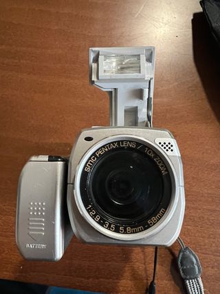Cámara digital Pentax Optio MX4 en color plata. Compacta y con zoom óptico. NO FUNCIONA, para arreglar o piezas - Zoom óptico 10x. - Lente SMC Pentax. - Ranura para batería.