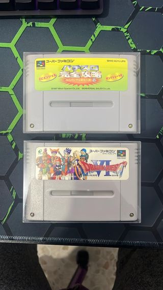 Dos cartuchos de Super Famicom. - Dragon Quest VI - Pachi-Slo: Universal Shin-Dai Nyūmon - Cartuchos en japonés.