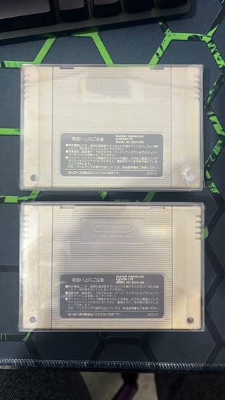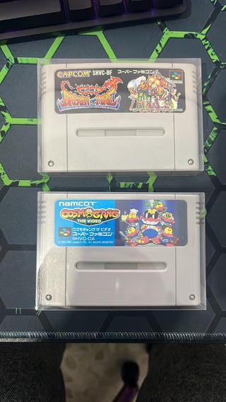 Dos cartuchos de Super Famicom. - Breath of Fire de Capcom. - Cosmo Gang the Video de Namcot.