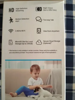 Cámara de seguridad para el hogar. - Diseño compacto y moderno. - Ideal para vigilancia interior. -Puedes grabar, tiene detector de movimiento, visión nocturna y también puedes hablar.