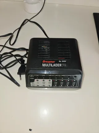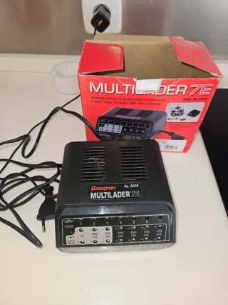 Cargador de alta velocidad para baterías de modelismo. - Modelo: Multilader 7E - Número de referencia: 6455 - Permite la carga simultánea de baterías de Antriebs-, Sender-, Empfänger-, NiMH-, NiCd, Pb. - Salida de potencia: 1A Delta Peak.