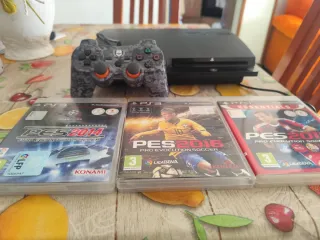 Pack PlayStation 3 + juegos PES Vendo PlayStation 3 en buen estado, ideal para los amantes del fútbol y los juegos clásicos. Incluye: Consola PS3 1 mando compatible a cable (no original), diseño camuflaje Juegos originales: PES 2014 PES 2015 (Essentials) PES 2016 Todo funciona correctamente. Ideal para jugar, revivir clásicos o para colección. Se vende todo junto, no separo. 📍 Venta en persona. 💬 Cualquier duda, ¡pregunta sin problema!