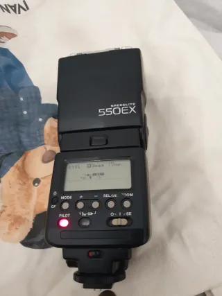 Flash externo Canon Speedlite 550EX. - Modo TTL. - Zoom 17 a 105mm - Botón PILOT para prueba de flash.