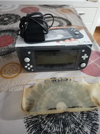 Consola portátil Nintendo Switch Lite en color gris, ideal para llevar a todas partes. Incluye funda protectora y un mando adicional para una experiencia de juego mejorada. - Funda de transporte. - Mando de control.