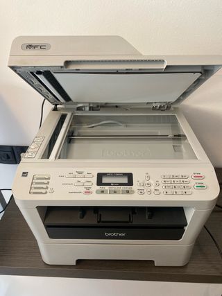 Impresora multifunción Brother MFC-7360N en color blanco. - Funciones de fax, digitalización y copiado. - Bandeja de salida para documentos impresos. Error en recarga de papel, no hace copias, para arreglar