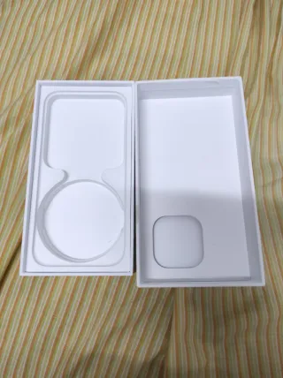 Caja original para iPhone 15 Pro. - Diseño interior para el teléfono y accesorios. - Color blanco.