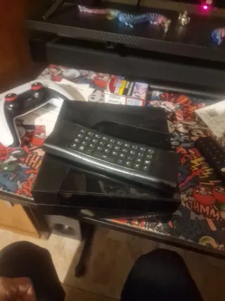 Decodificador UHD TV de Movistar. - Diseño moderno con rejillas de ventilación. - Indicador LED en la parte frontal. - Logotipo de Movistar visible. - Se venden juntas (60 euros ) o por separado ( 20 euros ) - Con mando