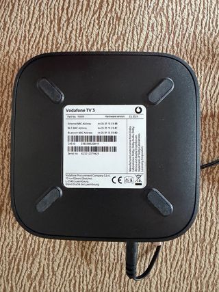 Decodificador Vodafone TV en color negro, con mando a distancia y cargador. - Diseño moderno y compacto. - Incluye mando a distancia. - Incluye adaptador de corriente. Estado correcto de funcionamiento. Se hacen envíos.