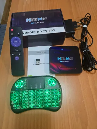 Decodificador H96 Max para TV con resolución 4K Ultra HD. - Incluye mando a distancia. - Incluye teclado inalámbrico. - Incluye adaptador de corriente. - Incluye cable HDMI - Incluye manual de usuario.