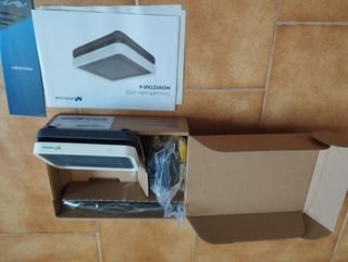 Router smart wifi HGU de Movistar y decodificador UHD MOVISTAR+, ideal para tu conexión y visualización de TV. - Diseño moderno y compacto. - Color gris y blanco. - Mando a distancia vocal nuevo Falta el transformador del decodificador