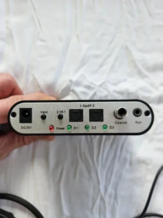 Decodificador de sonido envolvente digital HD Audio Rush. - Compatible con Dolby Digital PRO LOGIC II y DTS. - Incluye cables y adaptador de corriente.