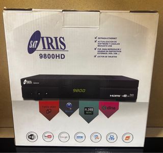 Decodificador satélite Iris 9800HD. - Entrada Ethernet. - Actualización de software y canales mediante USB. - PVR para reproducir y grabar en dispositivos externos (HDD, USB). - Lector de tarjetas. En su caja original . Recogida en el Prat , Barcelona y se hacen envíos. 3 El mando esta en tiendas entre 10 y 15 euros .
