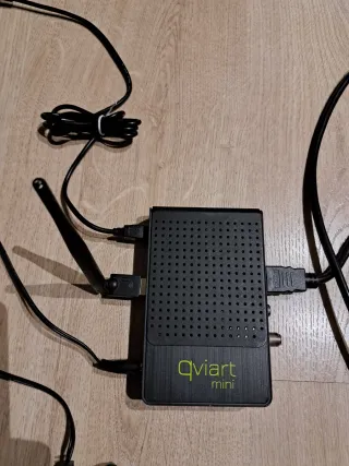 Decodificador satélite QVIART mini. - Diseño compacto y moderno. - Antena Wi-Fi incluida. - Conexión HDMI. - Mando a distancia. - Incluye cable HDMI