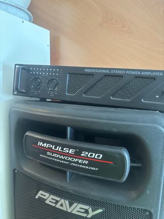 Se vende amplificador profesional y subwoofer. - Amplificador estéreo de potencia Peavey AMP800-MKII. - Subwoofer Impulse 200 con tecnología Hypervent.