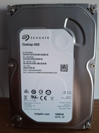 Vendo disco duro Seagate de 1TB modelo ST1000DM003 en estado prácticamente nuevo. El disco tiene 0 horas de uso comprobables en SMART (se puede ver en la captura del programa CrystalDiskInfo). 🔹 Capacidad: 1TB (1000GB) 🔹 Formato: 3.5" 🔹 Conexión: SATA III 🔹 Velocidad: 7200RPM (rápido y fiable) 🔹 Estado: Nuevo / sin uso real Perfecto para ordenador de sobremesa, almacenamiento de juegos, películas, copias de seguridad o ampliar espacio en PC. Funciona perfecto, sin ruidos ni fallos.