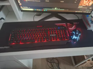 Conjunto de teclado y ratón para gaming con iluminación. - Teclado con retroiluminación LED roja. - Ratón con iluminación LED azul y blanca.