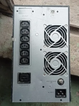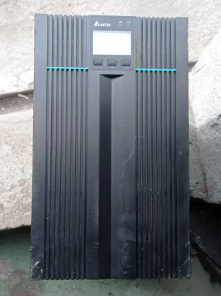 Funcionando perfectamente se puede comprobar..,.. Sistema de alimentación ininterrumpida (SAI) de la marca DELTA. - Diseño vertical con acabado en negro. - Pantalla frontal para visualización de información. - Botones de control en la parte frontal.