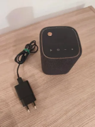 Altavoz Yamaha WS-B1A en color negro y dorado, con su caja original, cable y cargador. - Incluye caja original. - Incluye cable de carga. - Incluye adaptador de corriente.