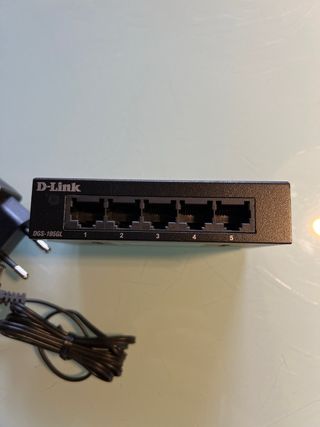 Switch de red D-Link DGS-105GL con 5 puertos. Incluye adaptador de corriente. - Modelo: DGS-105GL - Versión HW: A1 - Entrada: 5V 1A - P/N: EGS105GLEGB.A1E - S/N: QSAP124009678