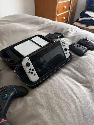 Consola Nintendo Switch modelo OLED en color blanco. Incluye todos sus accesorios originales. Incluye tambien un mando para jugar y los HORI SPLIT PAD PRO, para una mayor jugabilidad y comodidad. Consola con muy pocas horas de uso, esta en perfecto estado. - Pantalla OLED de 7 pulgadas. - Base de carga. - Joy-Con blancos. - Cable HDMI y adaptador de corriente.