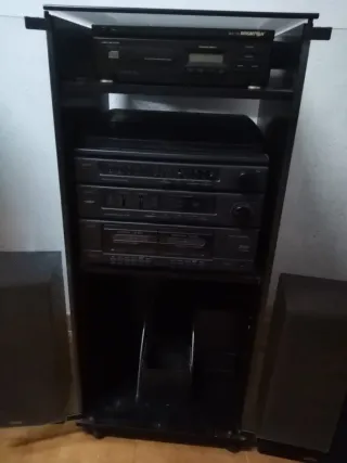 Equipo de sonido vintage Sanyo con varios componentes. - Reproductor de CD con LCD display - Doble pletina de casete. - Sintonizador de radio. - Altavoces no incluidos -Reproductor de Vinilo No envío, si vienes a recogerlo, hago precio