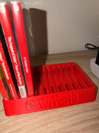Soporte impreso en 3D con capacidad para 12 juegos de Nintendo Switch, diseñado para mantener tus cartuchos protegidos, ordenados y siempre a mano. 🔴 Color rojo intenso 🧩 Capacidad para 12 cartuchos 📏 Diseño compacto y estable 🖨️ Fabricado en impresión 3D con acabado limpio 🎮 Compatible con juegos físicos de Nintendo Switch Se puede Personalizar con las letras en blanco. Ideal para: ✔️ Escritorio gaming ✔️ Estantería ✔️ Zona de entretenimiento ✔️ Regalo para gamer Diseñado para encajar perfectamente los cartuchos sin holguras excesivas y permitir una extracción comoda. Si quieres otro color, se personalizan bajo pedido. #nintendoswitch