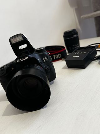 Vendo Canon EOS 70D en perfecto estado, con muy poco uso (solo para videos en casa). Pantalla impecable, sin arañazos, golpes ni defectos. 21325 disparos Incluye: Correa original Objetivo Canon EF-S 18-55mm f/3.5-5.6 IS STM estabilizado Objetivo Canon EF 50mm f/1.8 STM con parasol 1 batería original Equipo cuidado al detalle, listo para usar. Ideal para fotografía y video con excelente calidad de imagen. Se vende por cambio de plataforma