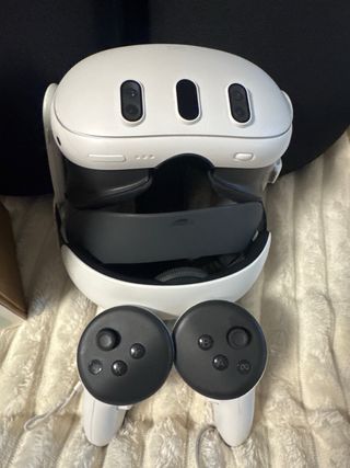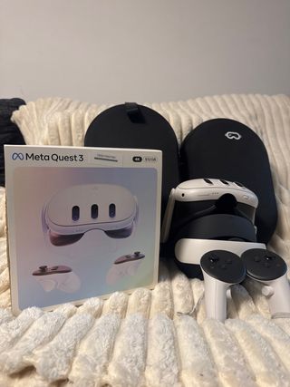 Gafas de realidad virtual Meta Quest 3 con 512GB de almacenamiento y resolución 4K. - Incluye dos mandos. - Fundas protectoras para las gafas.