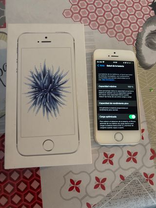 iPhone SE de primera generación en color plata y blanco. El teléfono está en buen estado y funciona correctamente. Salud de la batería al 100% Incluye su caja original y su cargador - Capacidad de 64GB. - Pantalla de 4 pulgadas. - Cámara iSight de 12 MP. NO SE HACEN ENVIOS ESCUCHO OFERTAS