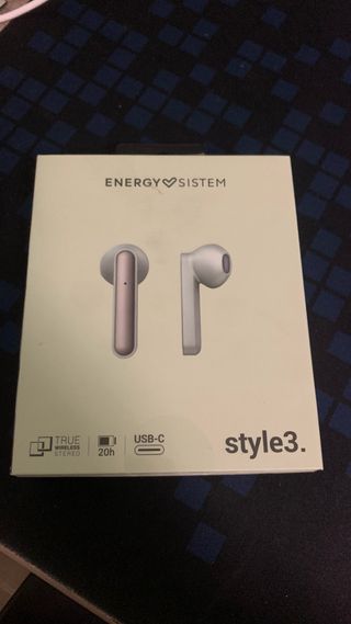 Auriculares inalámbricos Energy Sistem Style3. - Diseño True Wireless Stereo. - Autonomía de 20 horas. - Conexión USB-C. - NUEVOS, solo abiertos para hacer la foto y comprobar su correcto funcionamiento