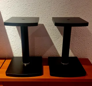 Par de soportes para altavoces, fabricados en madera. - Diseño elegante y robusto. - Base estable para colocar altavoces. Medidas: Base inferior 28x30 cm Base superior 23x26 cm