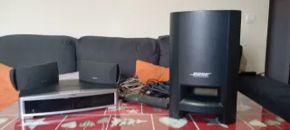 Sistema de sonido Bose Acoustimass 10 Serie V🎬 Sistema de sonido Bose Acoustimass 10 Series V – 5.1 completo Potencia y calidad de audio envolvente en tu salón, ideal para cine en casa o música con impacto. 🔊 Incluye: • 4 altavoces satélite + 1 central • Subwoofer Acoustimass con graves profundos • Cables originales para instalación (Fotos reales — lo que ves es lo que te llevas) 🎧 Calidad Bose clásica: sonido claro y envolvente, con graves potentes y agudos definidos. A pesar de ser un sistema por cable, su presencia sonora compite con muchos equipos modernos. ⚠️ Incluye todo el cableado por supuesto. Necesita Amplificador