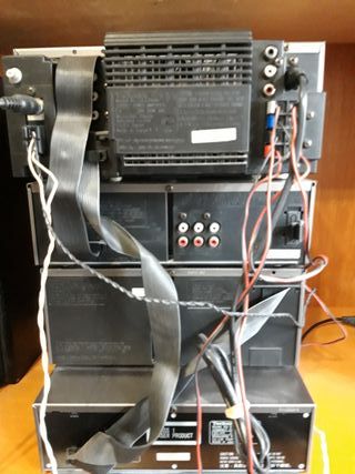 Equipo de Música Technics Prologic. He probado y funciona el amplificador, el procesador de sonido y la pletina de cassete. Presenta desperfecto en la carcasa y en una correa de corriente que alimenta el CD desde la pletina (muestro en fotos). Arreglando ese conector tienes la cadena de música completa. Tengo los altavoces originales (se venden aparte).