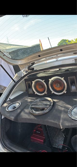 Sistema de sonido para coche con. Subwoofer 1000W con iluminación led interior. (graves) Varios altavoces Pioneer y Alpine. (medios) Dos tweeter’s. (agudos) Tres amplificadores o etapas de potencia. Vieta(1000W) Sony(800W) Sony(800W) Valorado todo en 1000€ aprox Se vende completo o por partes sin problema. Se regala todo el cableado. Precio por esta semana OFERTA!!!