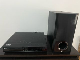 Equipo de música LG en color negro. - Reproductor de DVD. - Altavoz subwoofer. - esta arañado un poco por arriba pero funciona perfectamente. - solo venta en persona.