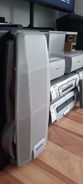 Equipo de música Technics SH-EH 790 en muy buen estado, Radio con RDS, cargador 5 cd, doble pletina, con sus 5 altavoces, mando a distancia y todos los cables. Funciona perfectamente como el primer día. Como se aprecia en las fotos tiene dos desperfectos en la tela que cubre los altavoces ambientales fruto del roce con un sofá, que no afecta para nada a la calidad del sonido.
