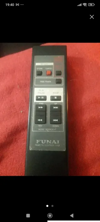 Hola, estoy vendiendo este mando a distancia Funai original. Lo tenía guardado como repuesto para un viejo reproductor de CD que ya no uso. Es un mando que funciona perfectamente y que he cuidado bien. Lo he limpiado a conciencia para que lo recibas listo para usar, y he comprobado personalmente que cada botón (Play, Stop, Memory, Music Search, etc.) responde sin problemas. Detalles del Artículo: Marca: Funai (Genuino, no es una imitación). Condición: Excelente estado, mínimas señales de uso normal. Compatibilidad: Asegúrate de que tu modelo de equipo Funai (especialmente si es un reproductor de CD o VCR)
