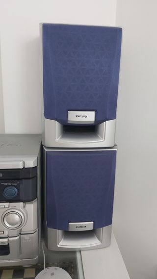 equipo de música completo compuesto de dos altavoces de gran volumen y CD, y dos departamentos para cassete. De la marca aiwa.