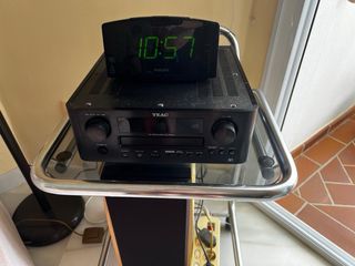 Equipo de musica compuesto de receptor compacto de la marca TEAC con lector de CD, sintonizador y puerto USB. 2 x 40 W a 6 Ω Además dos altavoces de tres vias con cajas de madera