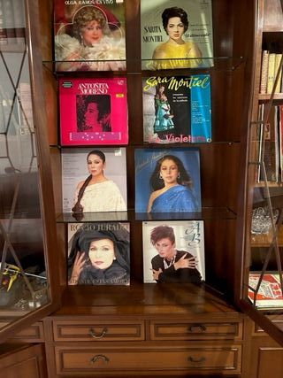 77 LP´s vinilo musica Clasica, Opera, Zarzuela, Tangos, Marchas militares, Española de los 80´s (Luis Cobos, P.Domingo, Duo dinamico, Rocio jurado, Lolita Sevilla, Olga Ramos, Isabel Pantoja, Massiel, José M.Soto, José L.Perales, Antoñita Moreno, Sara Montiel, AntonioMachin, Pimpinela, Sergio y Estibaliz, Montserrat Caballé, Joaquin Pixan Etc. Regalo equipo BETTOR EF-46 y dos meletines con cintas de Cassette.