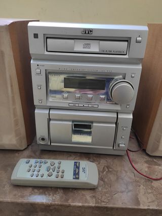 Equipo de música JVC con altavoces y mando