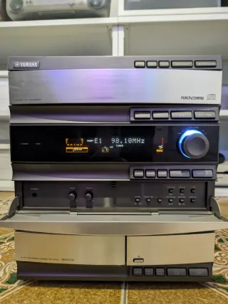 Equipo stereo de gran calidad como los de los 90, sonido ProLogic 5.1, de gran potencia, tiene la tapa trasparente de arriba agrietada, el lector de CD,s está averiado pero se puede repara, al auxiliar he añadido un dispositivo bluetooth para poder reproducir música del móvil o de cualquier aparato, la radio funciona perfectamente, lo que no sé si funciona es las reproductoras de cassette. El equipo está muy cuidado salvo por la pequeña rotura del plástico que comento y el lector de CD,s. Solo se acepta como forma de pago: Transferencia bancaria o Bizum. Dado el tamaño y peso del equipo, no se envía, se recoge en mano, cualquier