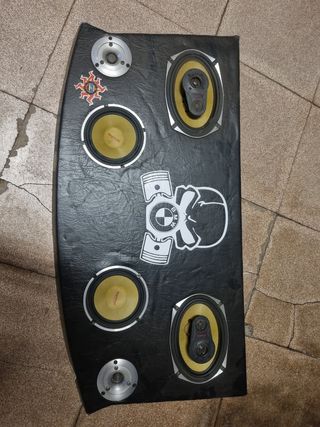 2 6x9 beyma 2 medios beyma 2 trompetas(filtros de las trompetas, uno de los dos roto bombo jbl 1000w vendeja para BMW serie 1, se adapta golf 6 y seguramente en más coches