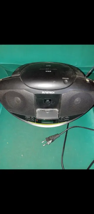 Equipo de sonido Sunstech con múltiples funciones. Aparato de música compacto con Radio FM,AM,Para CD, para USB, para poner iPod. En una foto está las características, la potencia, watios Marca Sunstech Muy poco usado, lleva mucho tiempo guardado, pero funciona bien - Reproduce CDs de audio. - Puerto USB para música. - Compatible con iPod. - Soporta formato MP3.