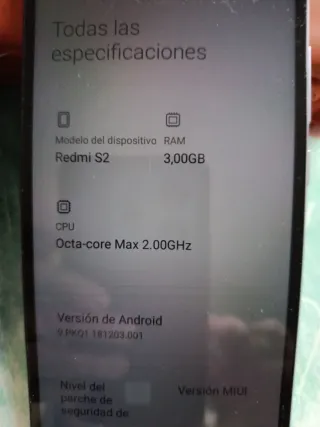 Teléfono móvil Xiaomi Redmi S2 con 3GB de RAM y procesador Octa-core. - Modelo: Redmi S2 - RAM: 3,00GB - CPU: Octa-core Max 2.00GHz - Versión de Android: 9 PKQ1.181203.001