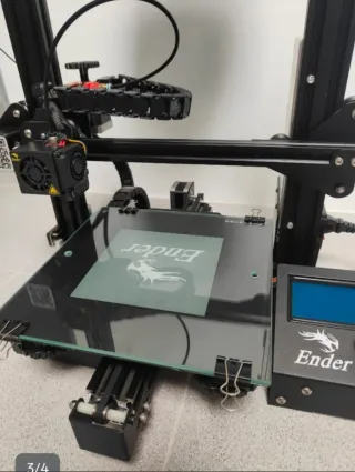 Impresora 3D modelo Ender 3 pro la cambio porque me compro un modelo con mayores prestaciones muy bien cuidada siempre calibrada y con bastantes mejoras hechas: cadenas portacables cama de cristal soplador para el extrusor y otras cosas.