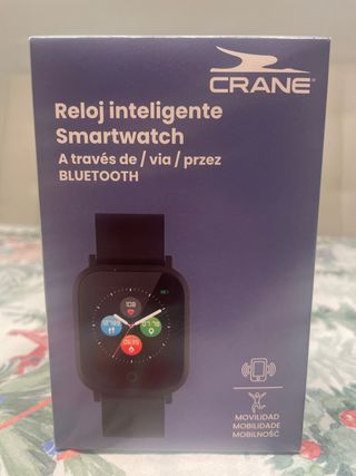 Reloj inteligente Crane, modelo Smartwatch, en color negro. Conectividad Bluetooth. - Pantalla táctil. - Monitor de actividad física. - Notificaciones de smartphone.