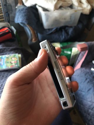 Consola portátil GBA plateada. - Diseño compacto y ergonómico. - Botones de control. - Puerto de audio.