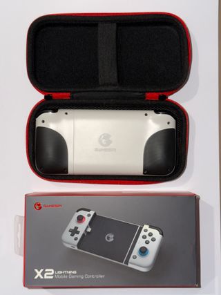 Controlador de juegos móviles GameSir X2 Lightning. - Diseño en color blanco y gris. - Incluye funda protectora roja. - Conexión Lightning. Usado literalmente 4 veces. Está completamente como nuevo, tanto el estuche como el mando.